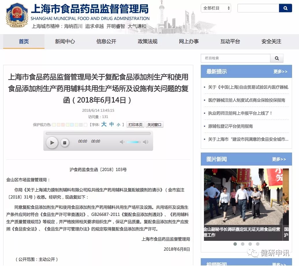2018年6月8日上海市食藥監(jiān)局批復(fù)金山區(qū)市場監(jiān)管局“關(guān)于復(fù)配食品添加劑生產(chǎn)和使用食品添加劑生產(chǎn)藥用輔料共用生產(chǎn)場所及設(shè)施有關(guān)問題的復(fù)函”,明確同意復(fù)配食品添加劑生產(chǎn)和使用食品添加劑生產(chǎn)藥用輔料共用生產(chǎn)場所及設(shè)施。共用場所及設(shè)施生產(chǎn)條件應(yīng)同時(shí)符合《食品生產(chǎn)許可審查通則》、GB26687-2011《復(fù)配食品添加劑通則》、《藥用輔料生產(chǎn)質(zhì)量管理規(guī)范》等規(guī)定,并嚴(yán)格按照相關(guān)要求組織生產(chǎn),保證產(chǎn)品質(zhì)量。復(fù)配食品添加劑生產(chǎn)應(yīng)按照《食品安全法》、《食品生產(chǎn)許可管理辦法》的規(guī)定取得復(fù)配食品添加劑生產(chǎn)許可。