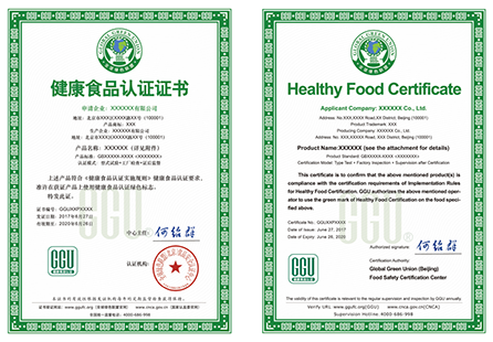健康食品認(rèn)證證書(中英文版)
