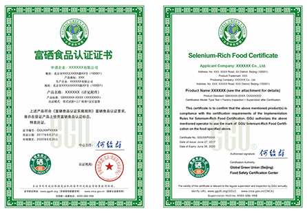 富硒食品是指產品以自然富集有機硒的初級農產品為主要原料,加工過程不人工添加硒,且在每100g食品中硒含量大于30%NRV或每100ml食品中硒含量大于15%NRV的食品,按目前的推薦標準即100克食品中硒的含量大于15ug或100ml食品中硒的含量大于7.5ug,并通過GGU富硒食品認證的食品,方可認定為真正意義上的富硒食品