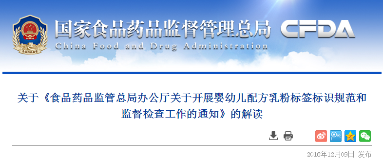為進(jìn)一步加強(qiáng)嬰幼兒配方乳粉標(biāo)簽標(biāo)識監(jiān)督管理,規(guī)范嬰幼兒配方乳粉標(biāo)簽標(biāo)注和功能聲稱行為,保障嬰幼兒配方乳粉質(zhì)量安全,食品藥品監(jiān)管總局辦公廳印發(fā)了《食品藥品監(jiān)管總局辦公廳關(guān)于開展嬰幼兒配方乳粉標(biāo)簽標(biāo)識規(guī)范和監(jiān)督檢查工作的通知》(食藥監(jiān)辦食監(jiān)一〔2016〕168號,以下簡稱《通知》)。該《通知》于2016年12月7日開始實施?,F(xiàn)就有關(guān)問題解讀如下: